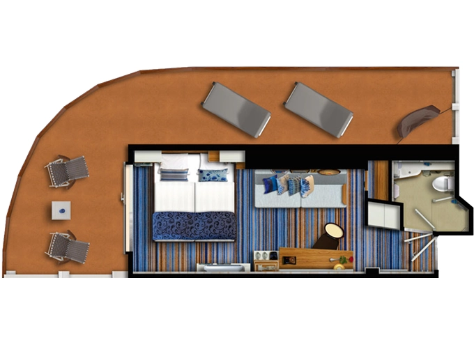 | JBAO - Junior Suite s balkónom 26 m² + balkón 8 m² so stolom. 10. paluba. Max 4 osoby. Výhody Junior Suite. | 4 098 € 4 098 € za osobu |