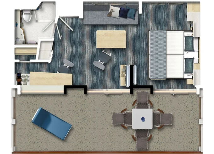SUSO - Übersee Suite 40 m² + balkón 9 m² s ležadlami a hojdacou sieťou. 14. paluba. Max 4 osoby. Výhody Suite. 9 998 € 4 999 € za osobu